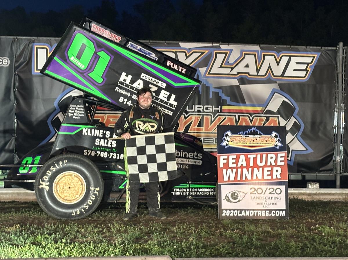 When the smoke cleared, Brandon Spithaler (32B), from Butler, claimed the $3,500 victory in the Falconi’s Moon Township Automotive 410 Sprint Car main, while Timmy Bittner (01), from Beech Creek, dominated wire to wire to win the Allegheny Sprint Tour 305 Sprint feature.