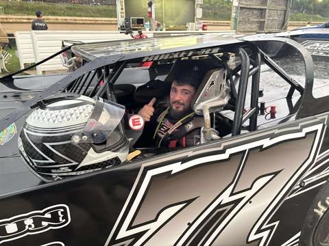 Tom Klein (77), from Rochester, celebrated a milestone moment by scoring his first-ever win in the Rohrich Automotive | Chevy Performance RUSH Late Model feature.