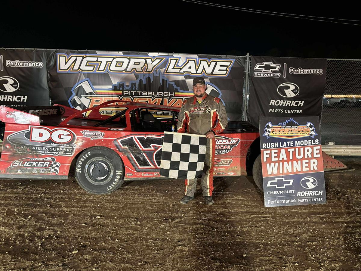 Joining the card are the Rohrich Automotive/Chevrolet Performance RUSH Late Models, Pittsburgh Truck Center Penn Ohio Pro Stocks, Auto House Hobby Stocks, and the Kehm Oil Young Guns. Gates open at 5 PM, hot laps at 6 PM, and racing at 7 PM.